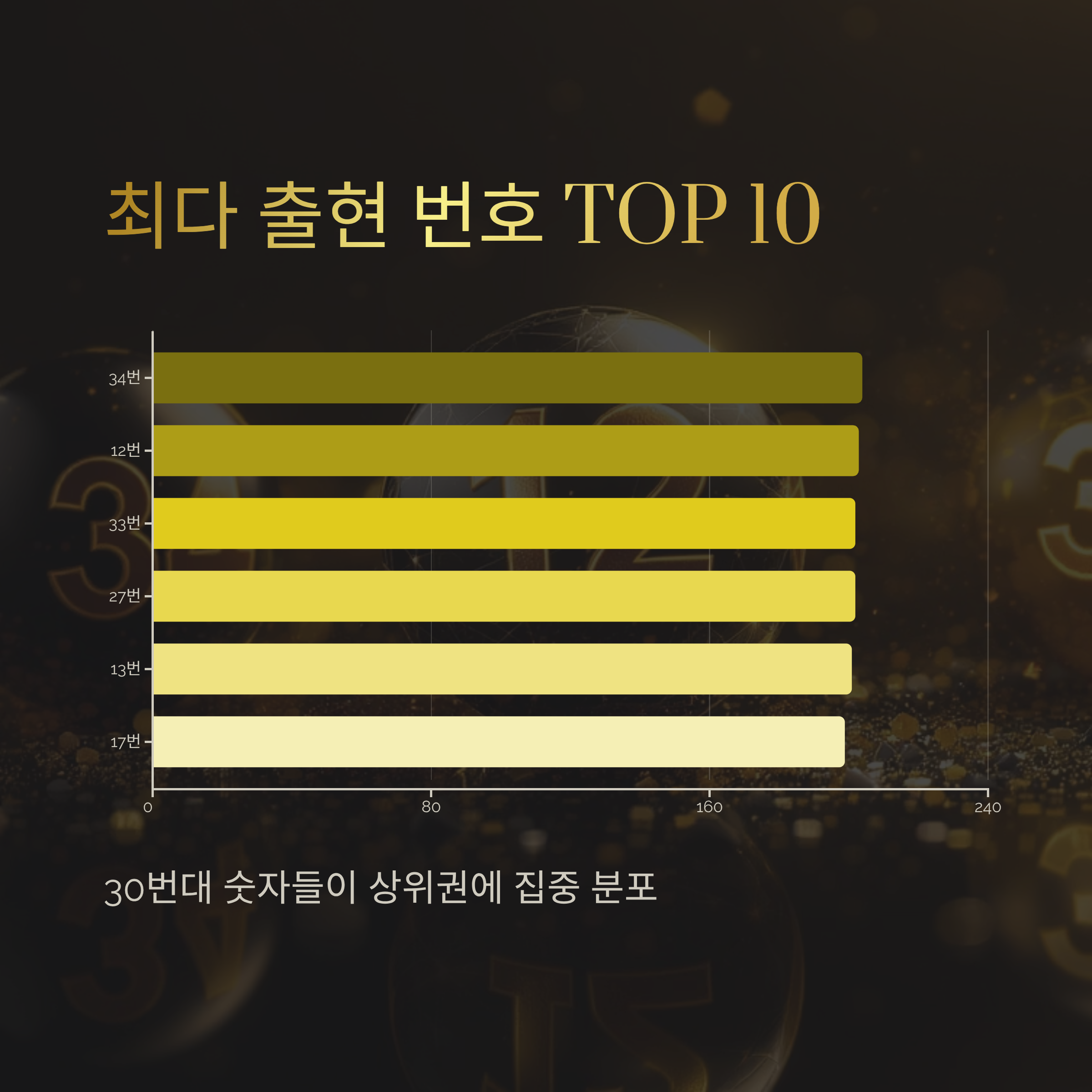 이런 행운숫자들의 역대 출현 횟수를 살펴보면 흥미롭습니다.