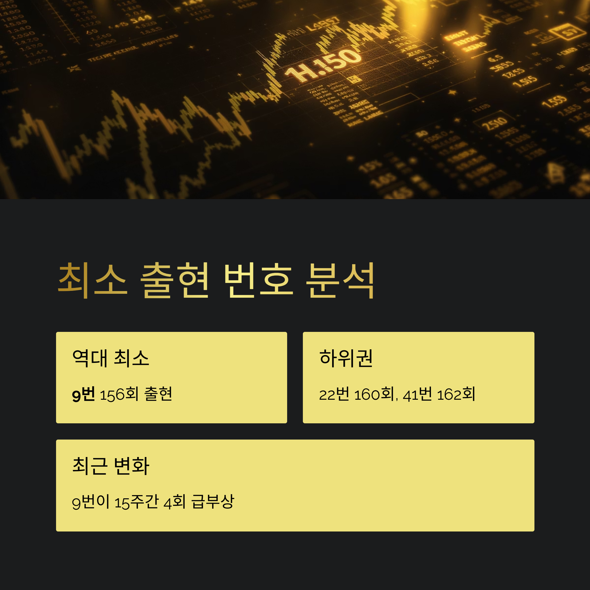 역대 최소 출현 번호는 9번으로 총 156회밖에 나오지 않았습니다.
