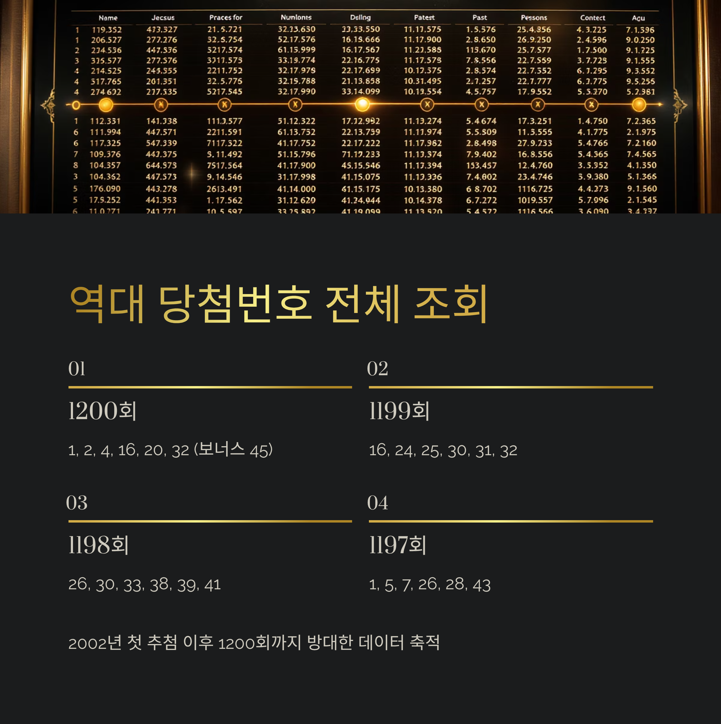 2002년 12월 첫 추첨 이후 현재 1200회까지 진행되면서 방대한 데이터가 쌓였습니다.